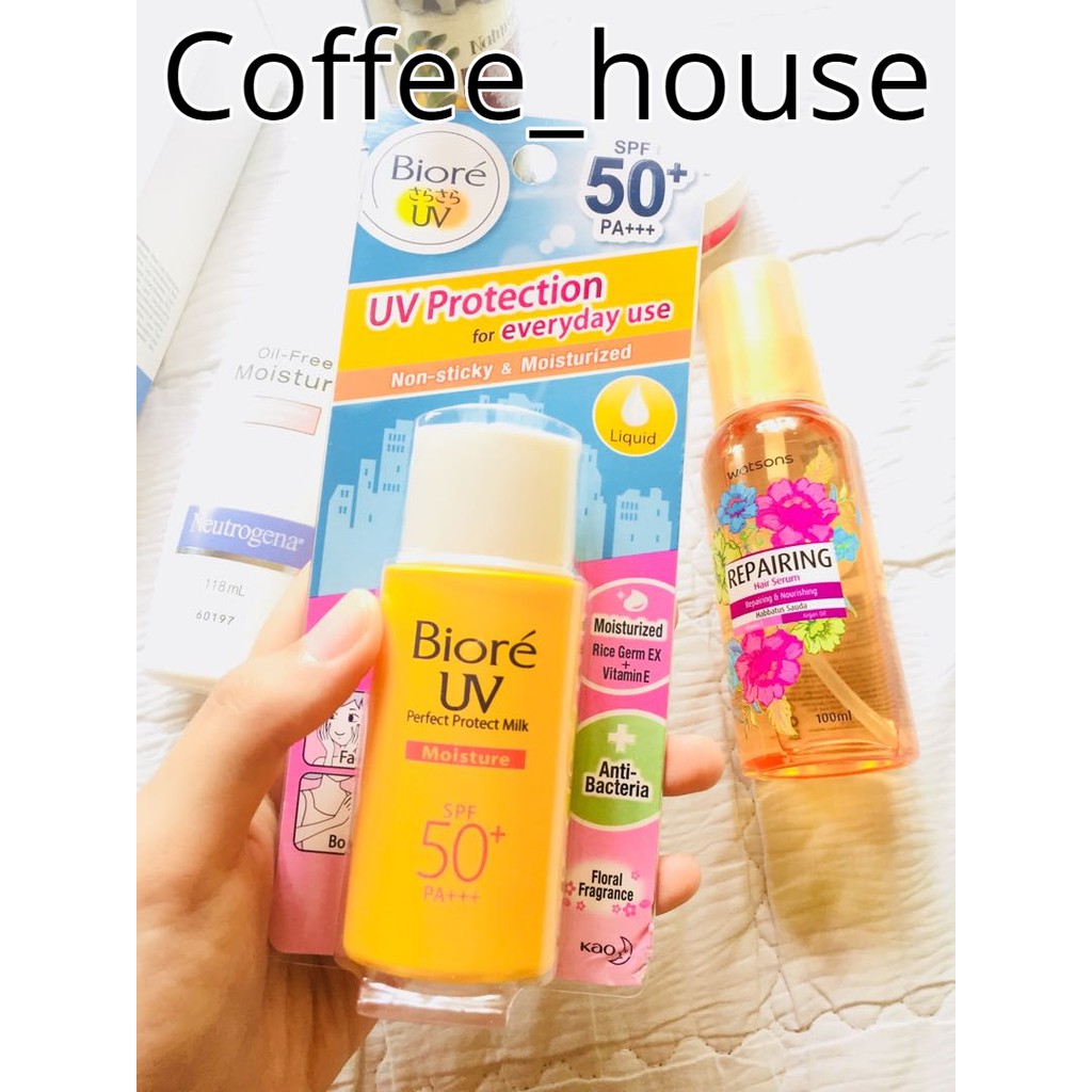 This sunscreen is the best for so many reasons milk perfect. The sunscreen fluid is renewed to feature biore's new smooth water repellent veil that better prevents the skin from feeling sticky when sweating than its previous formula.